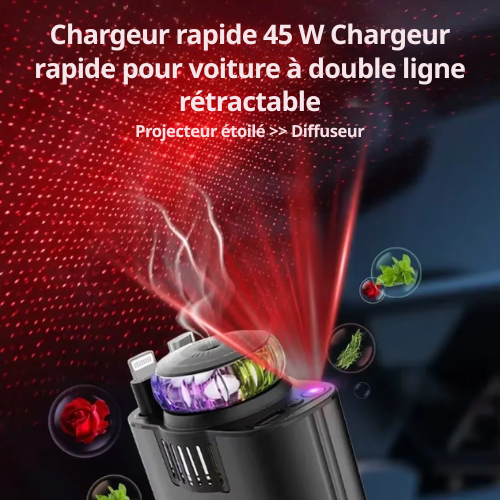 شاحن سيارة قابل للسحب 5 في 1 مع أروما وإضاءة نجوم - شاحن سريع معطر هواء للسيارة